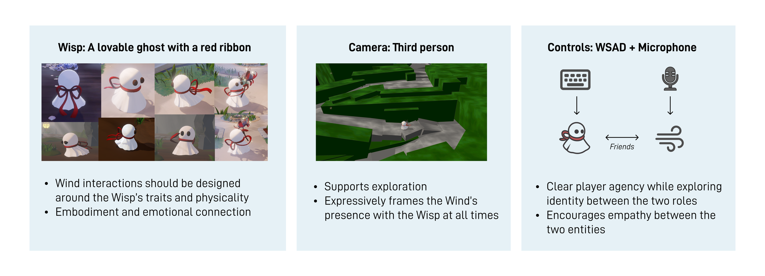 How can the 3Cs inform player as the Wind alonside the Wisp, and guide the interaction design?